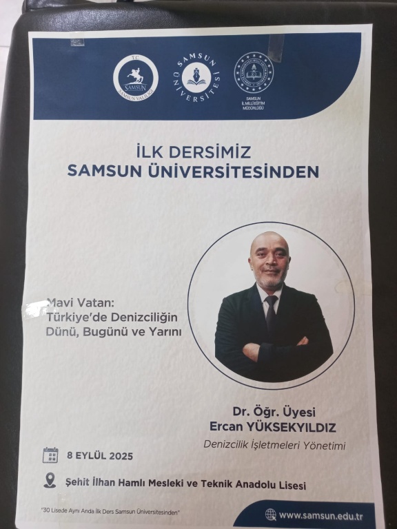 Okulumuz mezunu ve Samsun Üniversitesi Öğretim Üyesi Ercan YÜKSEK YILDIZ "Mavi Vatan, Türkiye'de denizciliğin dünü ,bugünü ve yarını temalı" semineri ile yılın ilk faaliyeti ilk ders olarak yapılmıştır.